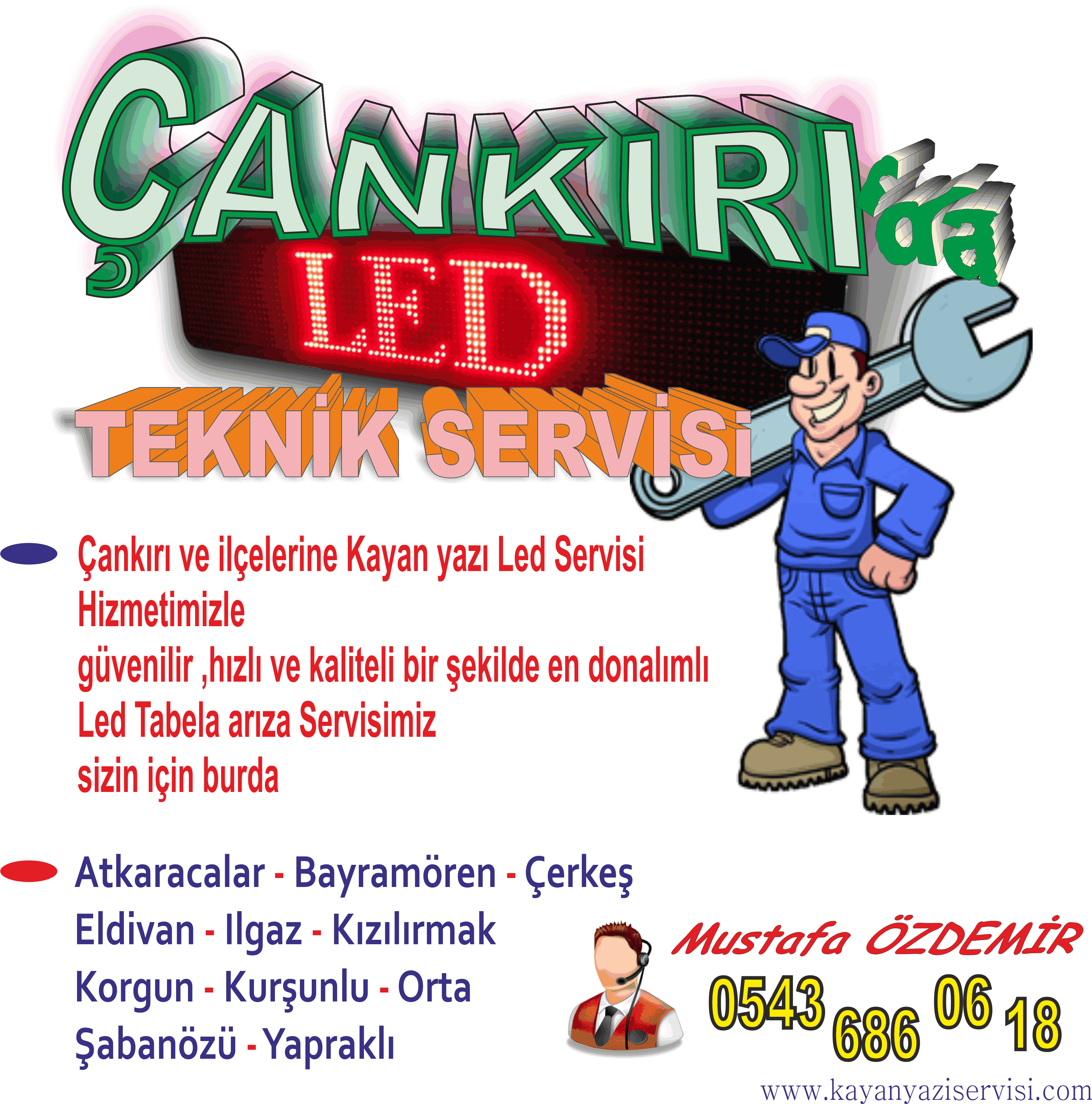 Çankırı Eldivan, Şabanözü, Orta, Kurşunlu, Çerkeş ve tüm ilçelerinde Kayan yazı led tabela için her türlü program desteği, ayarlama, arıza servisi ve bakım işleri müşteri menmuniyeti ile uygun fiyatlara yapılır.