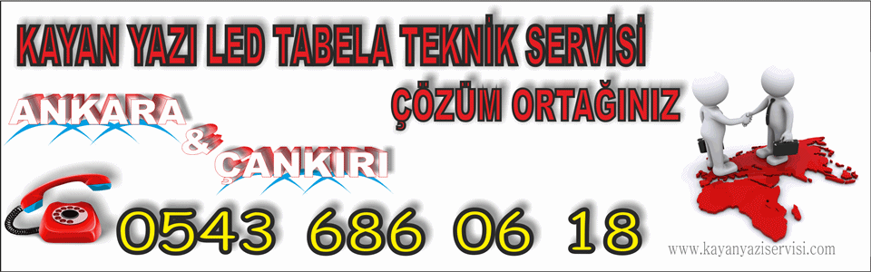 Ankarada kayan yazı led tabela  servis işleri yapılır Bahçelievler ,Aydınlıkevler, Keçiören, Akyurt led tabela arıza servisi. Ankara ve çevresinde  kayan yazı led tabela program, kayan yazı led tabela arıza onarımı, kayan yazı led tabela teknik destek işleri %100 müşteri memnuniyeti ile yapılır