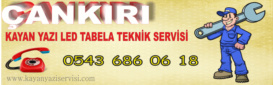 Çankırı Eldivan, Şabanözü, Orta, Kurşunlu, Çerkeş ve tüm ilçelerinde Kayan yazı led tabela için her türlü program desteği, ayarlama, arıza servisi ve bakım işleri müşteri menmuniyeti ile uygun fiyatlara yapılır.